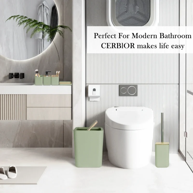 The trash can and toilet accessories are durable and sleek. They make my bathroom look so organized and modern.
