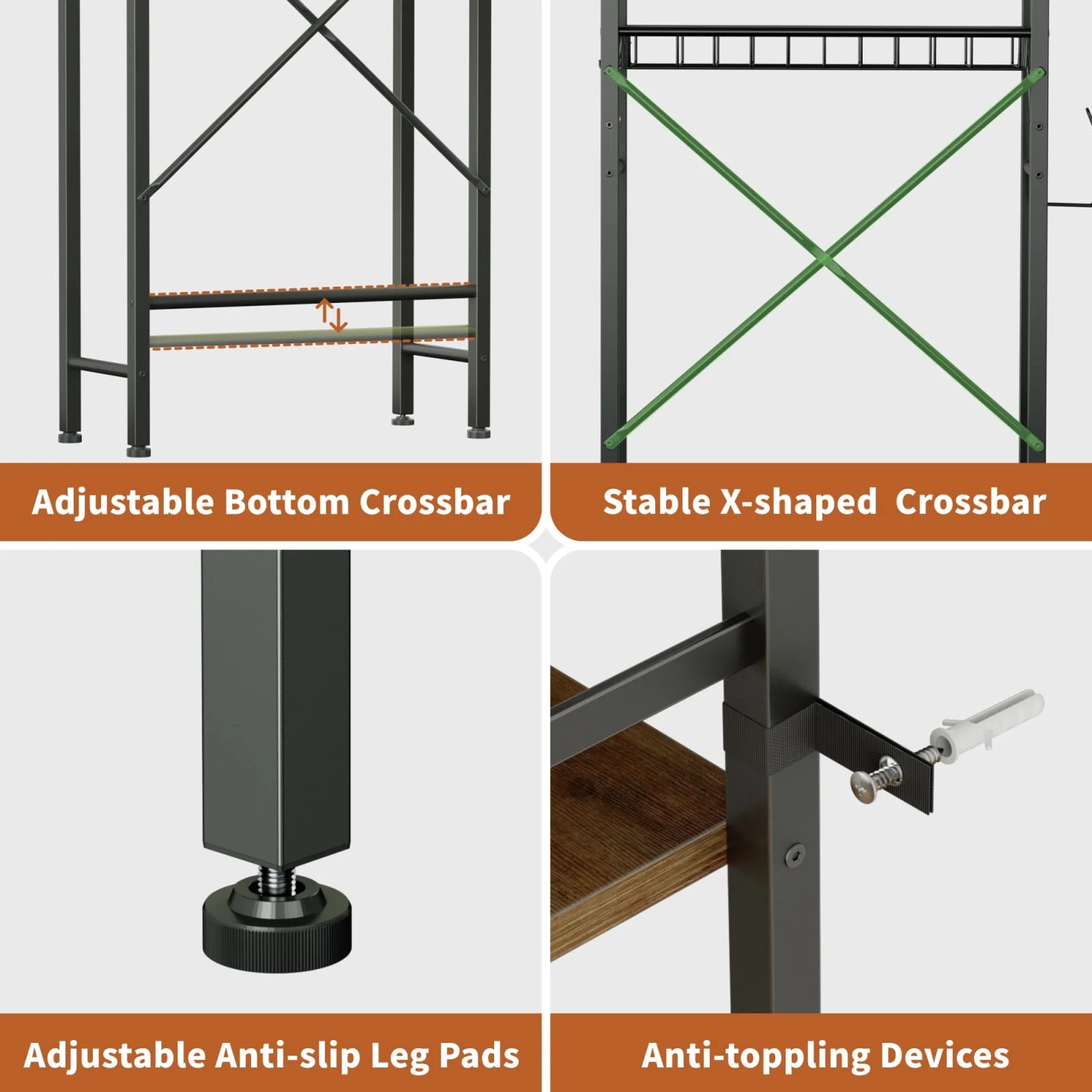 - Stable Design: Features an X-shaped metal crossbar and anti-fall kit for stability, along with anti-slip foot pads for balance and safety.