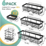 Ophanie Adhesive Shower Caddy 6 Pack, Large Capacity Bathroom Organizers and Storage, No Drilling Wall-Mounted Basket, Black