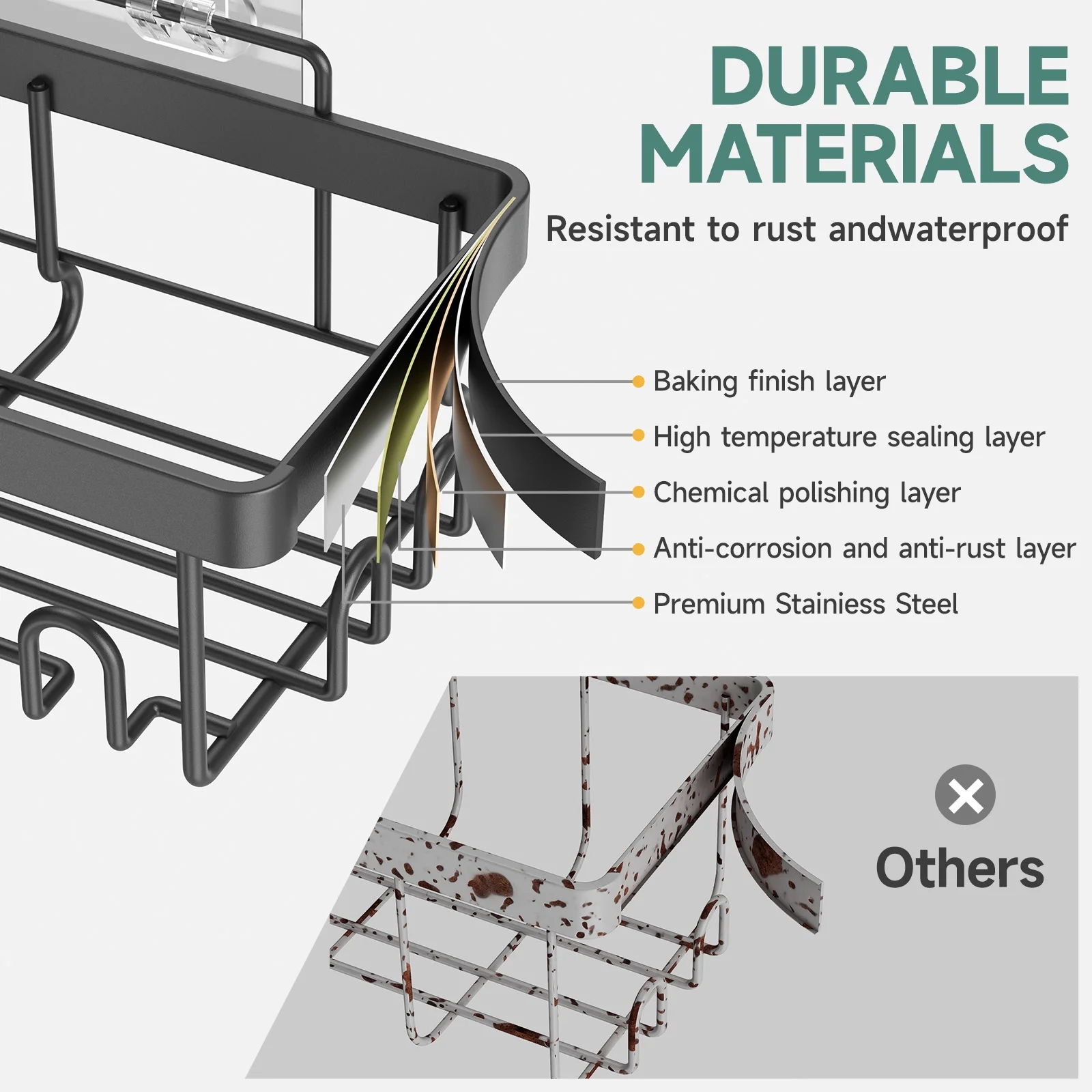 - Heavy Weight Bearing- Crafted from high-quality, resilient materials, this caddy set stands firm against heavy loads, providing steadfast support for all your shower essentials. Its sturdy construction ensures longevity, making it a reliable and long-lasting solution for your daily organization.